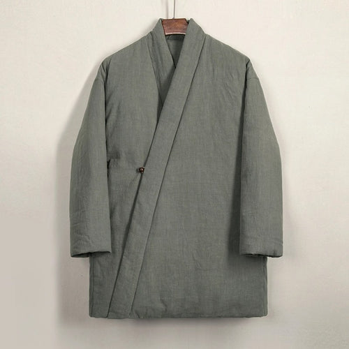 • Vintage Linen Mid-Length Stand Collar Trench Coat