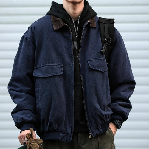 • Retro Patchwork Loose-fitting Thick Collared Jacket