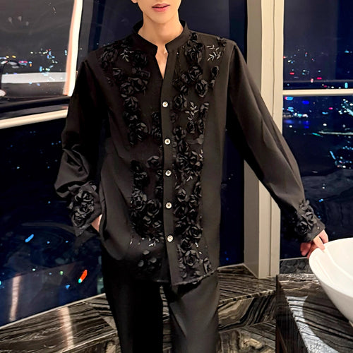 3D Flower Embroidered Sequined Shoulder Pad Shirt