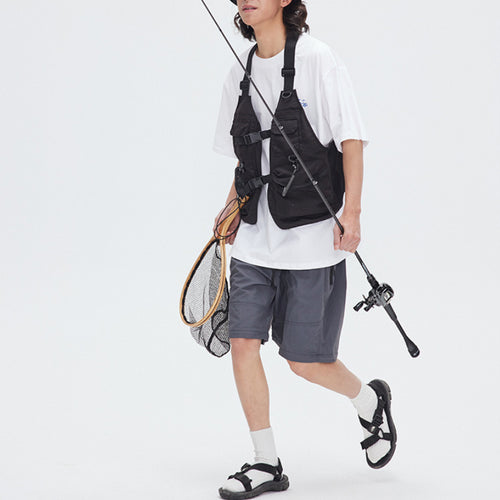Cargo Vest Collarless Cardigan Jacket