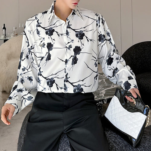 Casual Jacquard Lapel Button-down Long-sleeved Loose Shirt