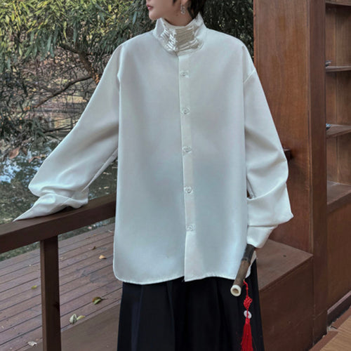 Casual Stand Collar Disc Button Tassel Retro Shirt