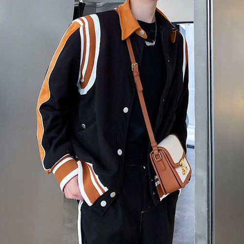 Contrasting Color V-neck Braided Rope Decorative Sweater