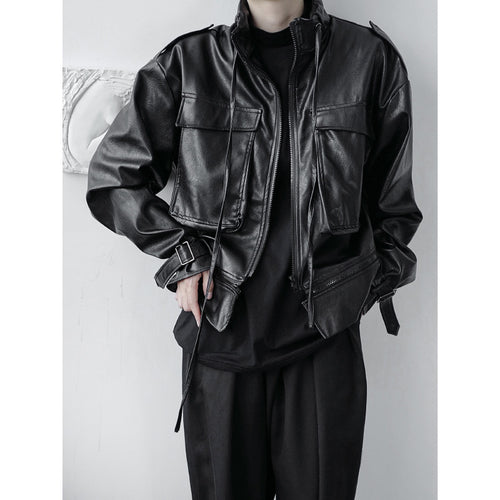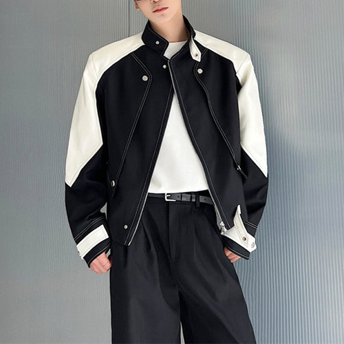 Black and White Contrast Structured Stand Collar Cropped Jacket