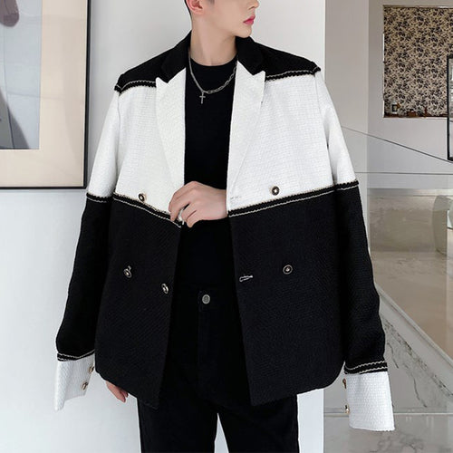 Black And White Colorblock Shoulder Pad Cropped Jacket