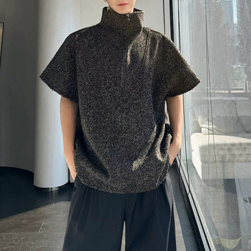 Wool Bat Zipper Turtleneck Short-sleeved T-shirt