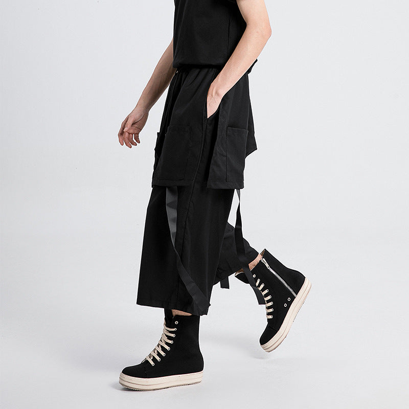 Ribbon Fake Two-piece Straight Casual Pants