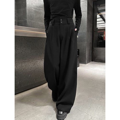 • Scimitar Button Loose Casual Wide-leg Pants