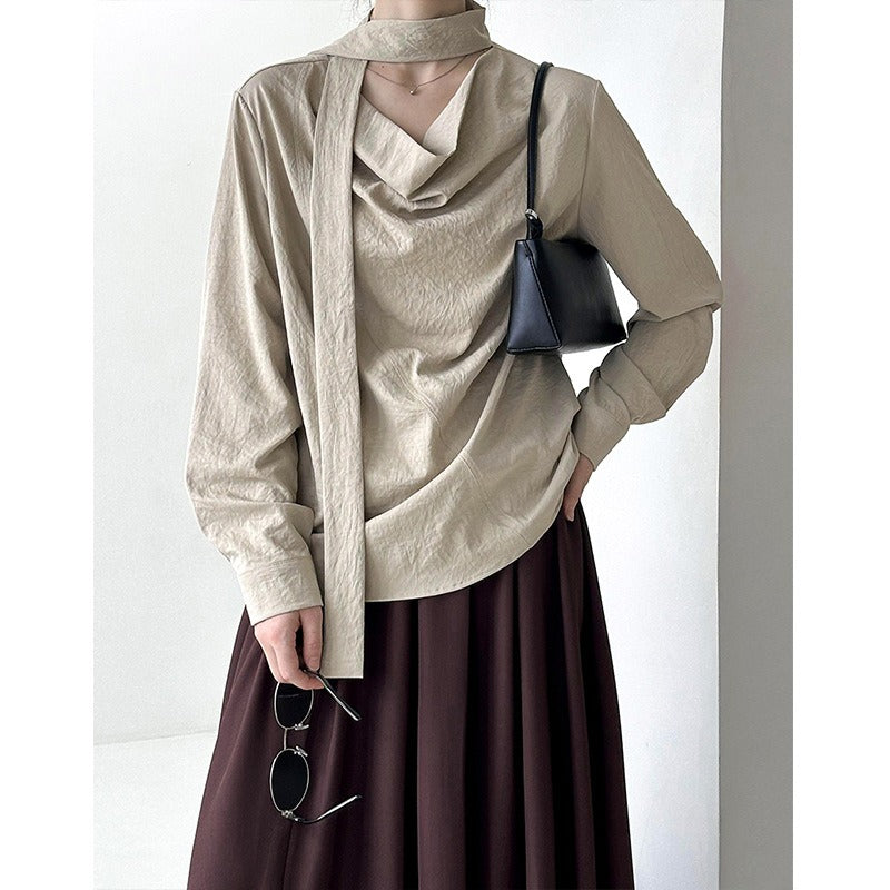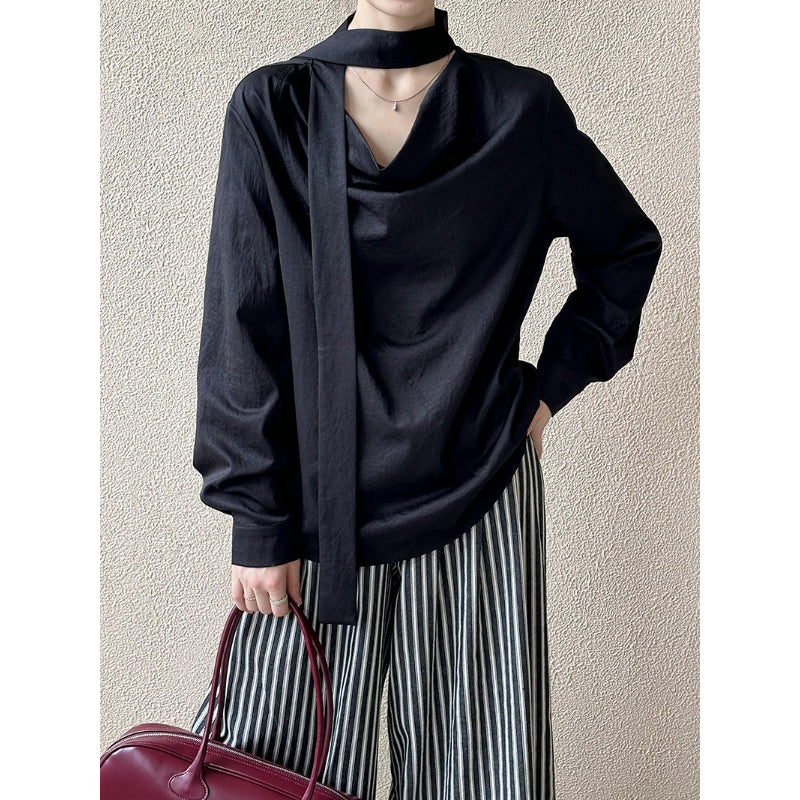 Stack collar Ribbon Shirt