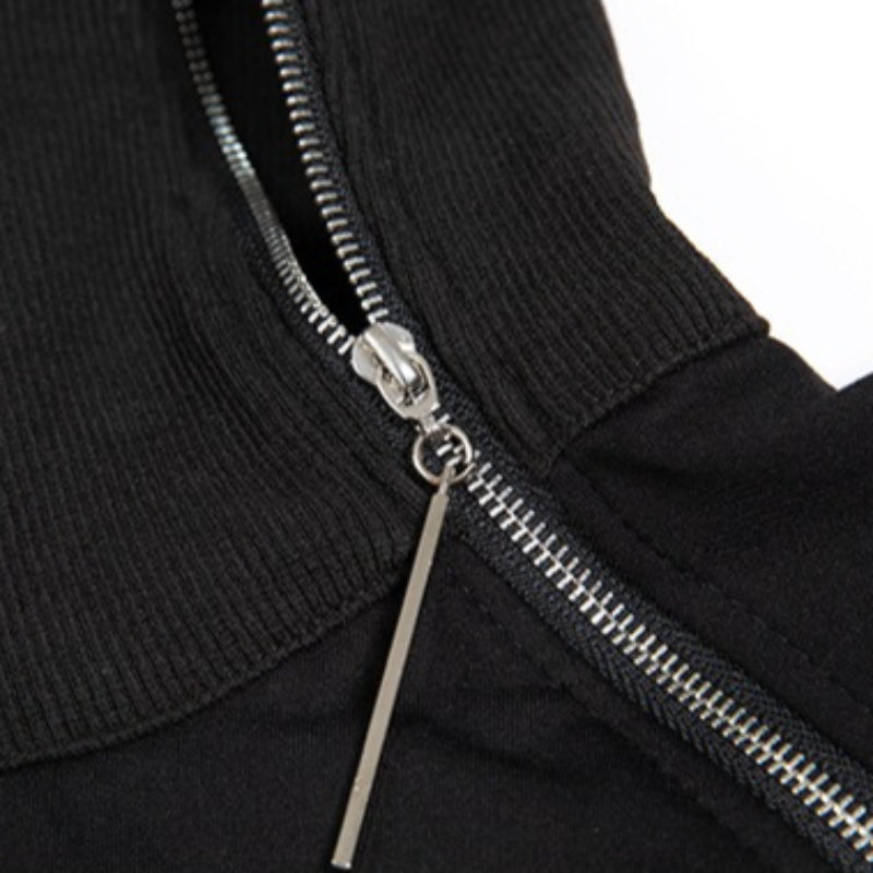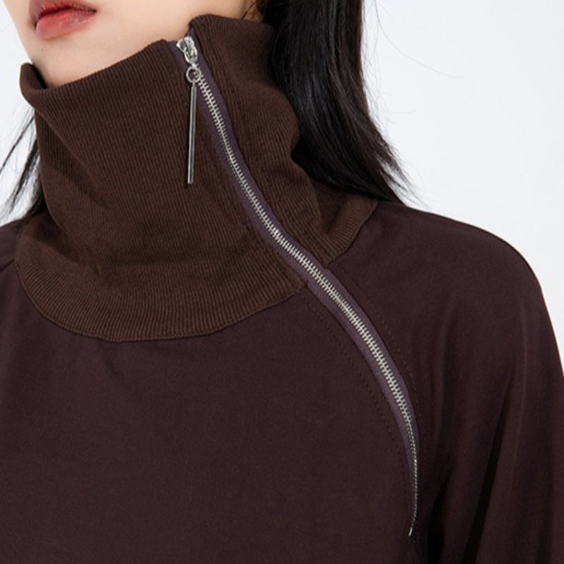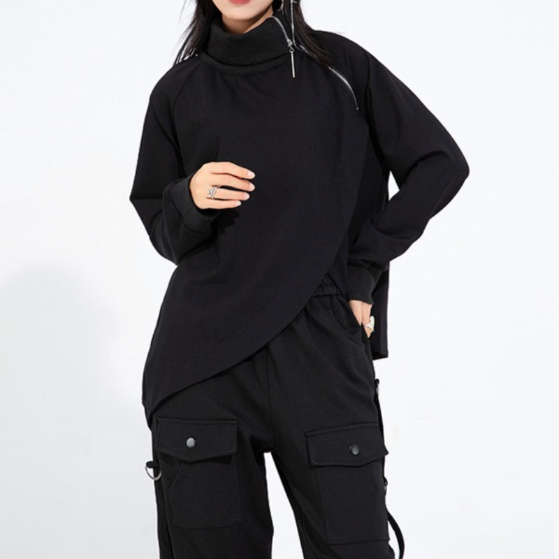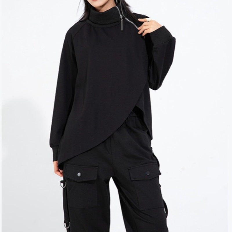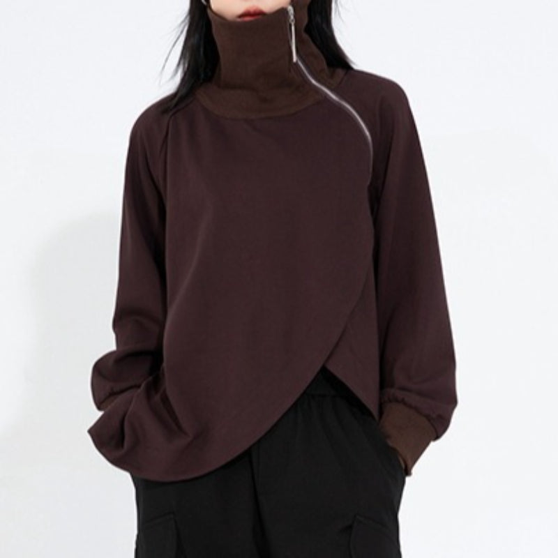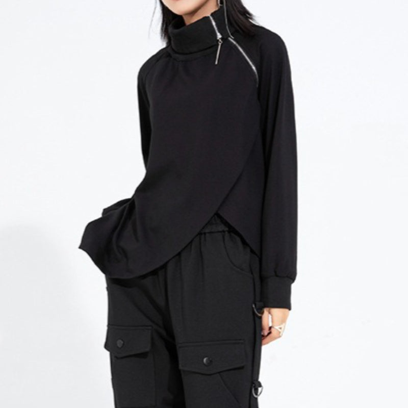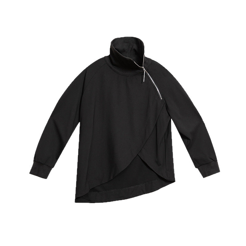 High-neck Side-zip Irregular Loose Top