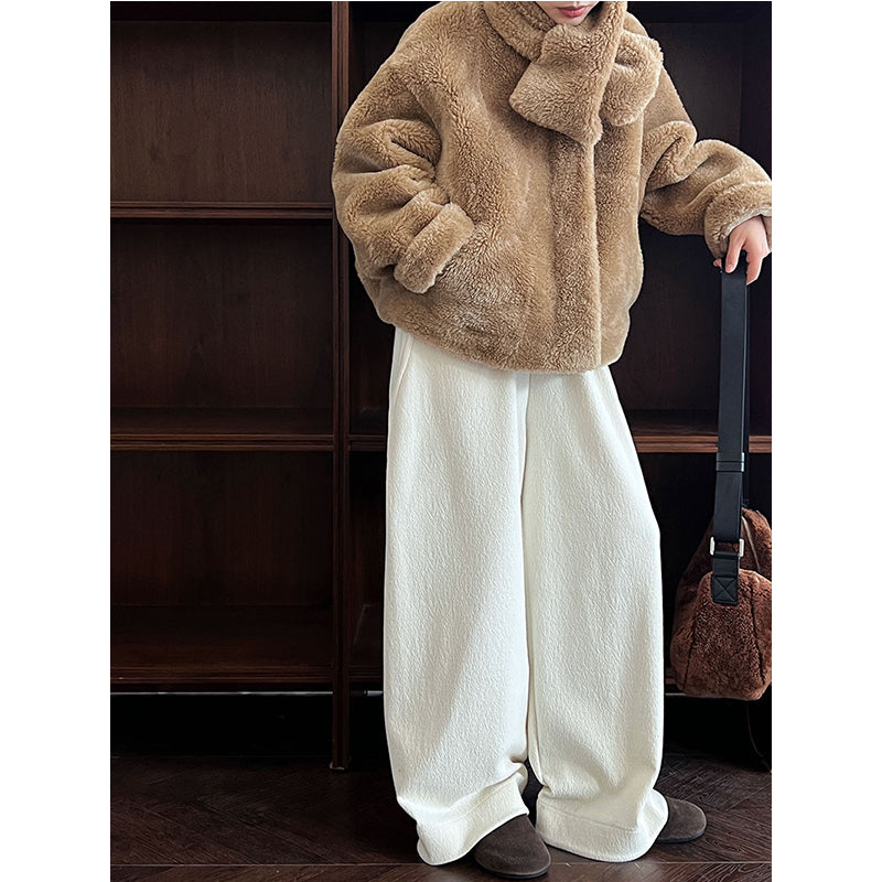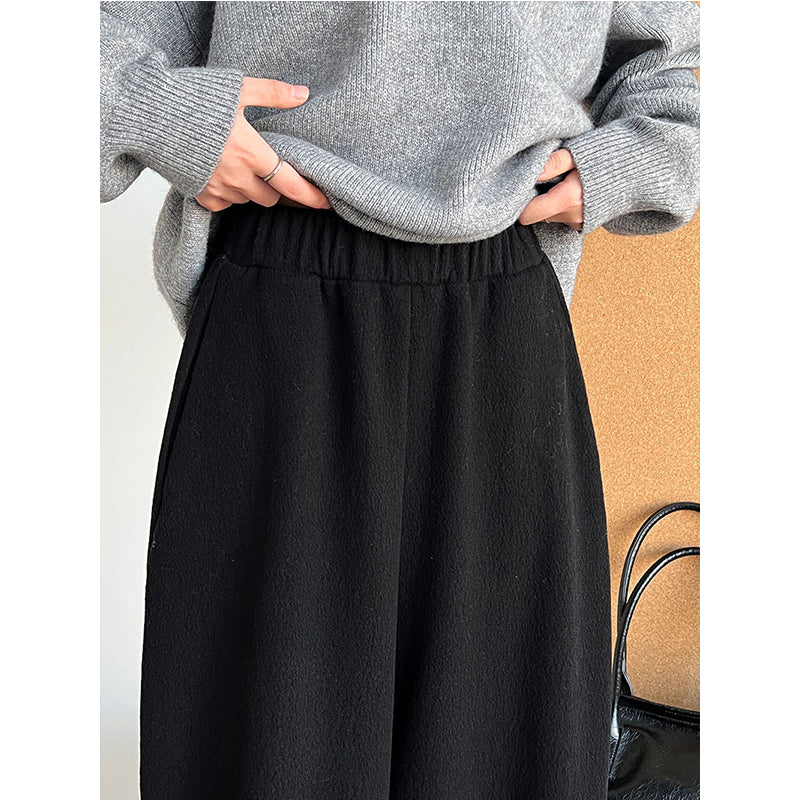 High-waisted Elasticated Casual Straight Trousers