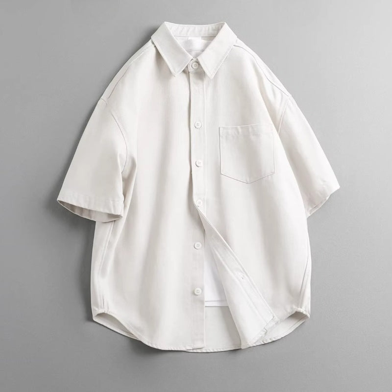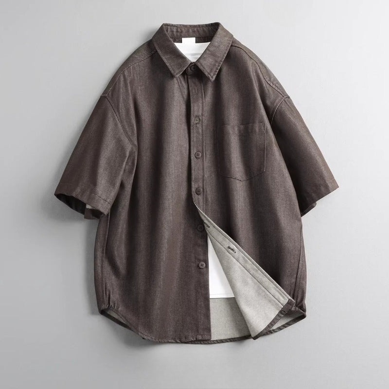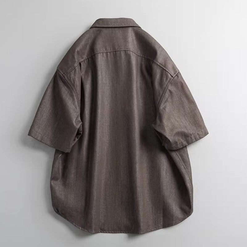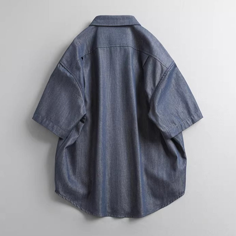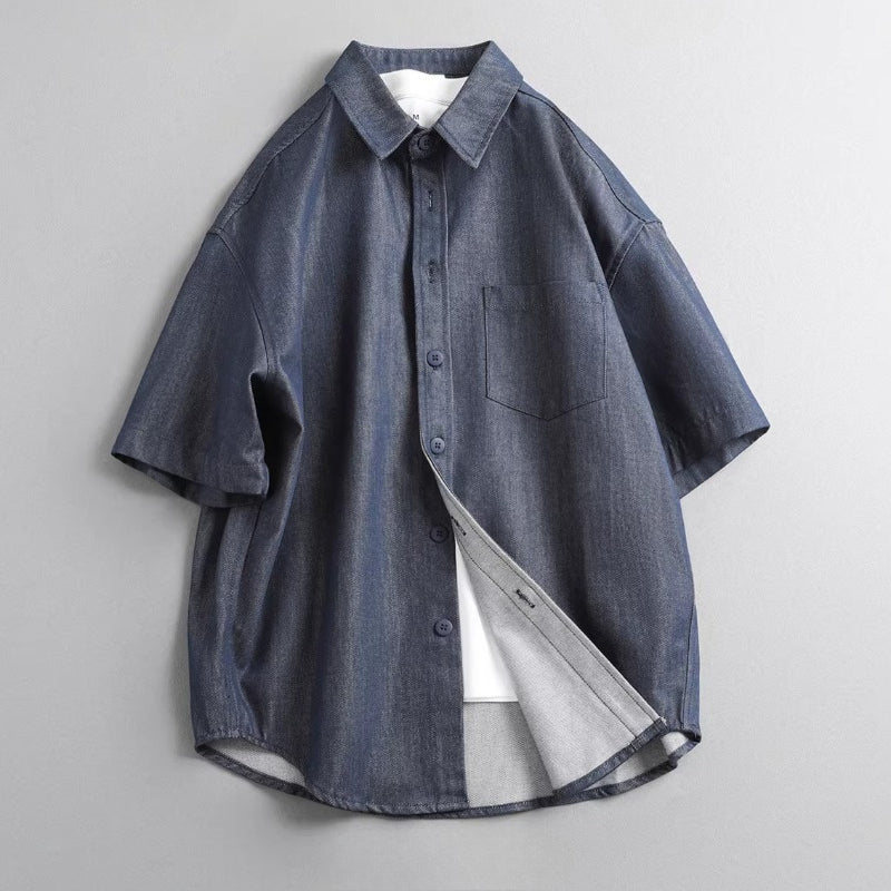 Casual Retro Twill Faux Denim Loose Collar T-Shirt