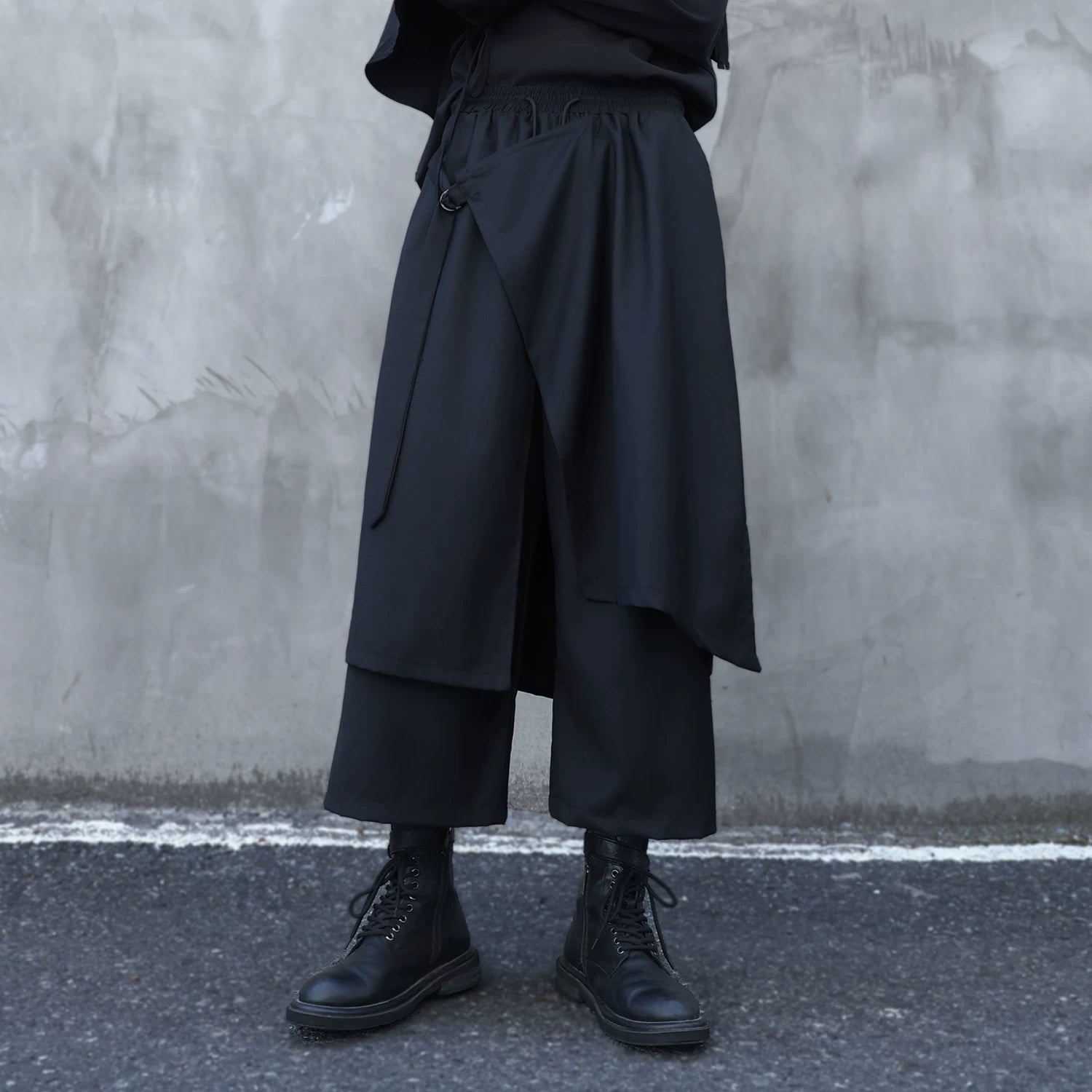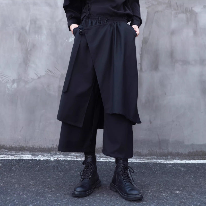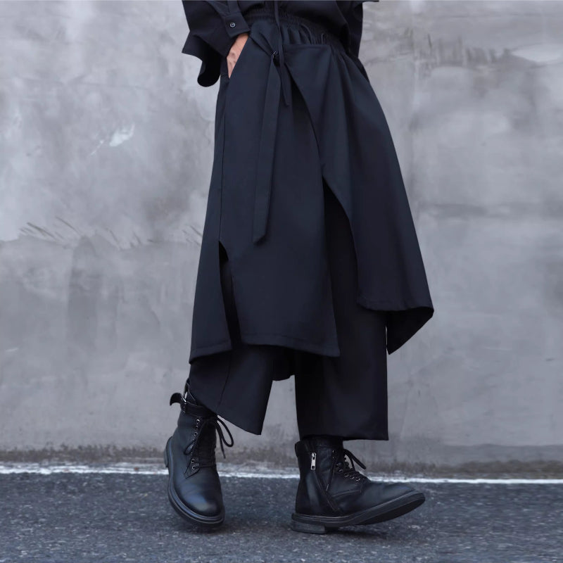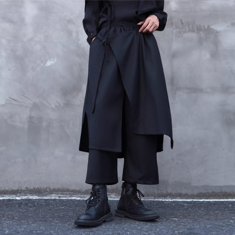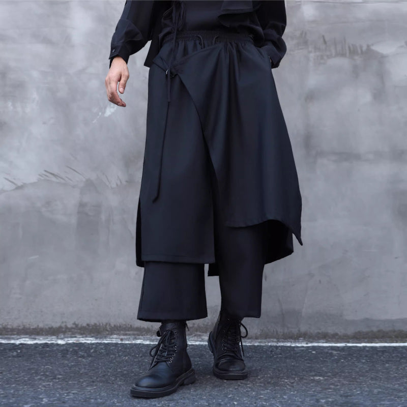 Faux Two-piece Wide-leg Asymmetrical Skirt Pants