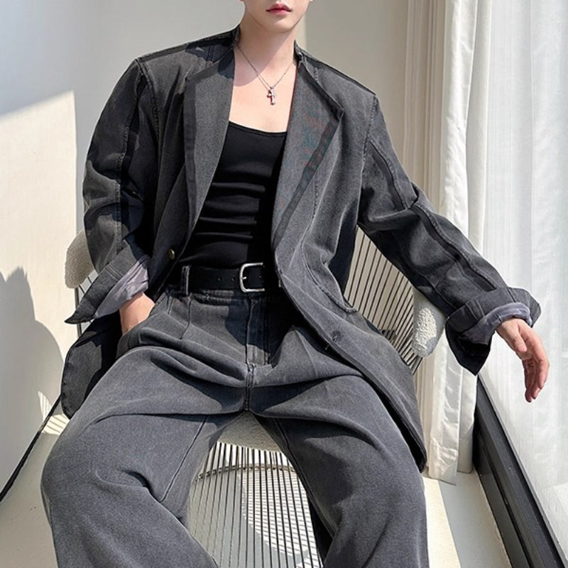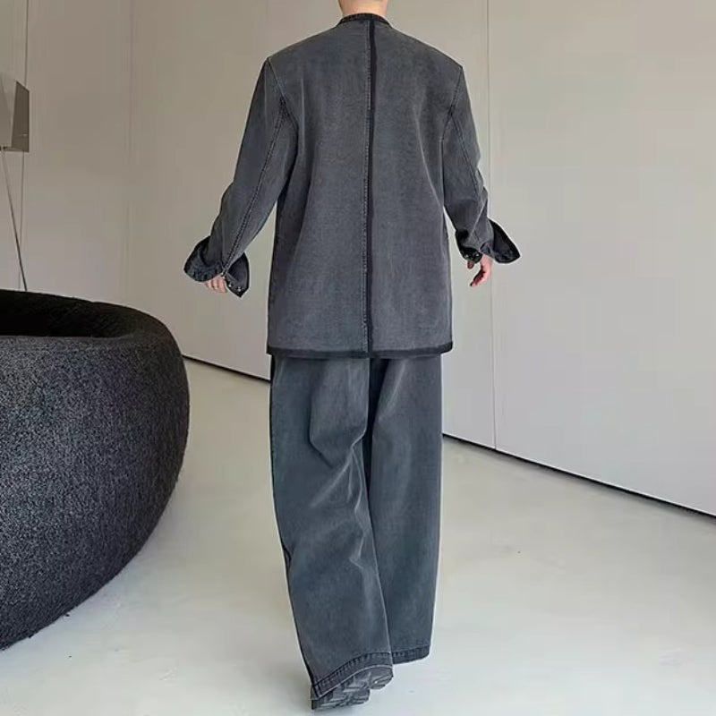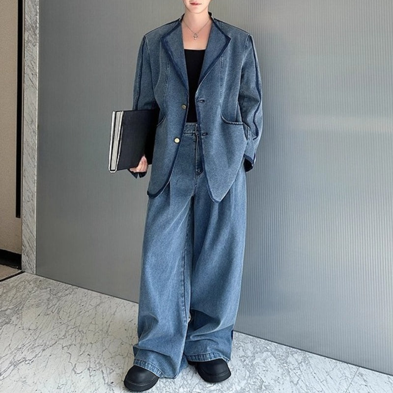 Vintage Heavy-duty Distressed Washed Denim Jacket and Wide-leg Pants – stylesock