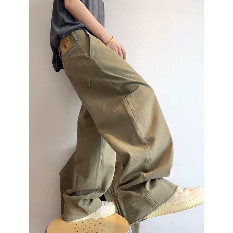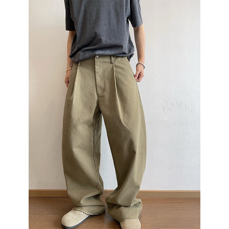 Retro-style Frayed Pleated Straight-leg Cargo Pants – stylesock