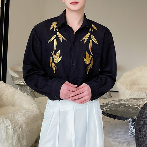 Maple Leaf Embroidered Vintage Lapel Long Sleeve Shirt