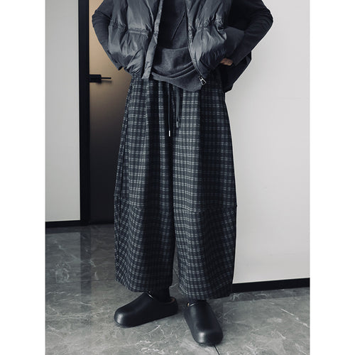 Retro Woolen Loose Plaid Wide-leg Casual Pants