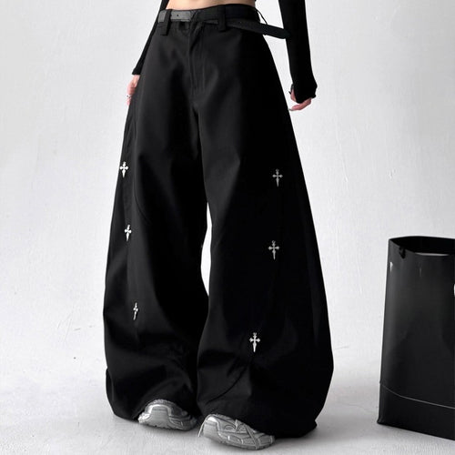 Heavy Metal Rivet Straight Scimitar Wide-leg Pants