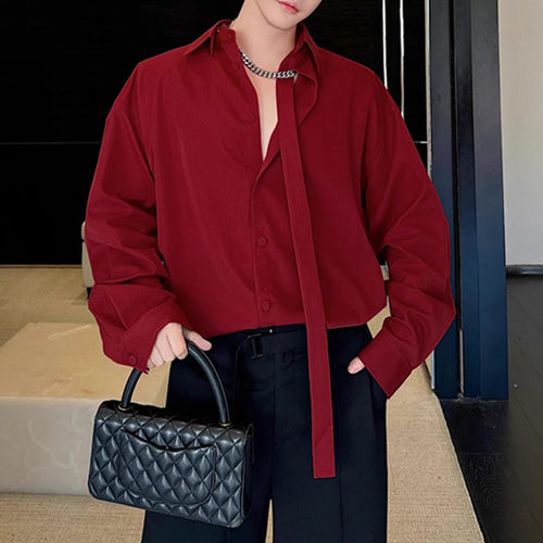 Red Shirt Long Sleeves with Detachable Lapel Ribbon