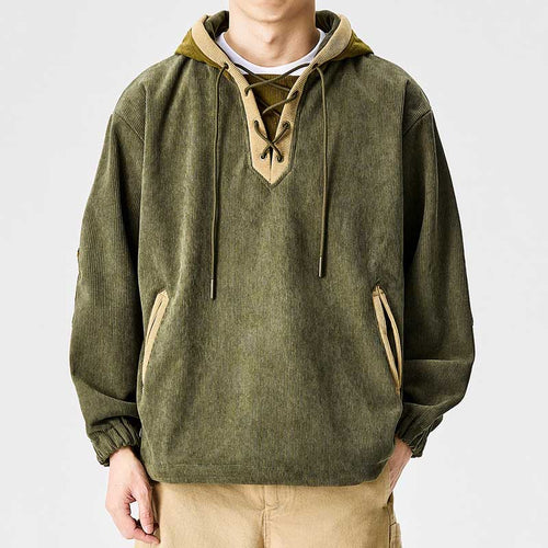 Retro Corduroy Color-blocked Hoodie Sweatshirt