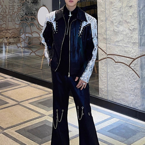 Heavy Rivet Sequin Patchwork Shoulder Pad Jacket