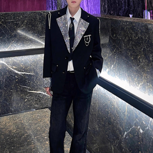 Shiny Rhinestone Chain Loose Shoulder Pad Jacket
