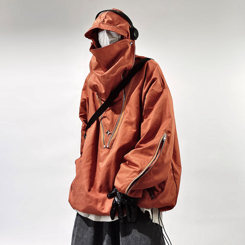 Mid-length Retro Buttoned Stand Collar Embroidered Windbreaker