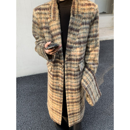 Fake Two Piece Spliced Stand Collar Woolen Long Coat