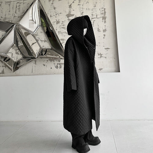 • Dark Lightweight Rhombus Hooded Over-the-knee Cotton Jacket