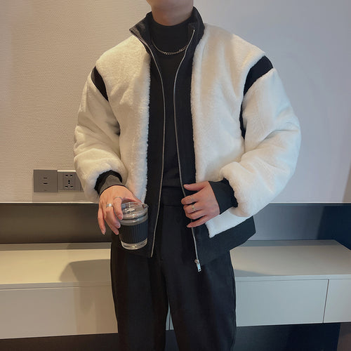 • Contrast Color Splicing Stand Collar Thick Coat