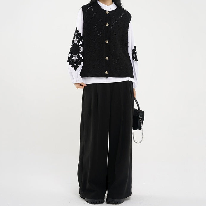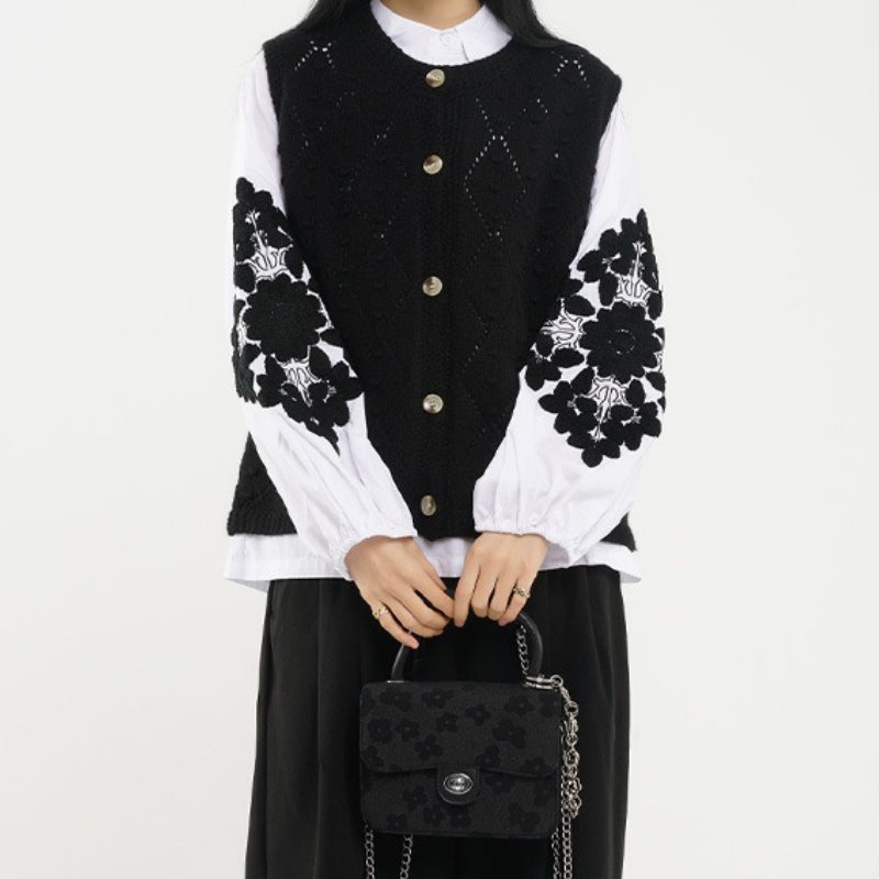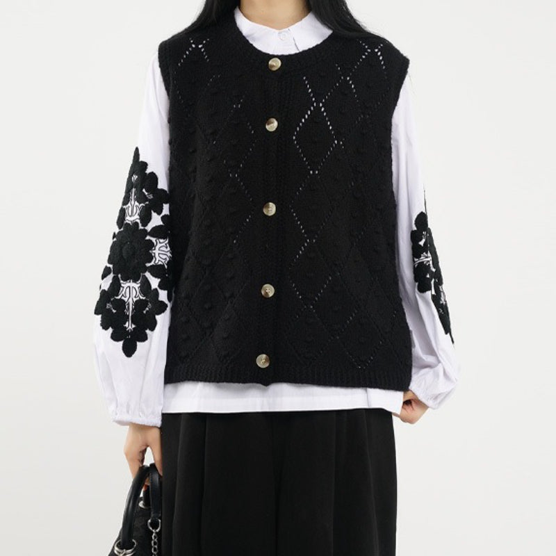 Round Neck Diamond Knitted Cardigan Vest
