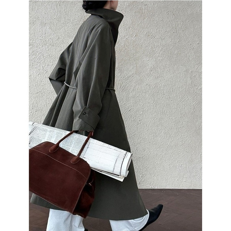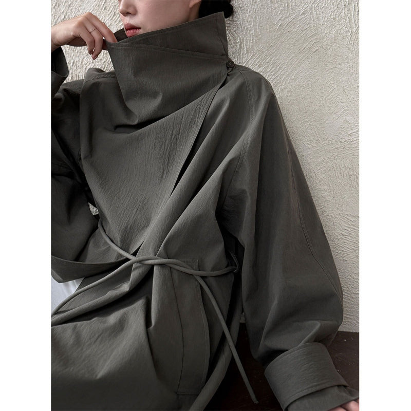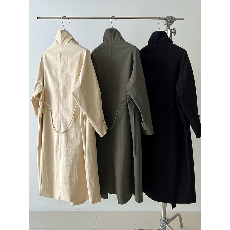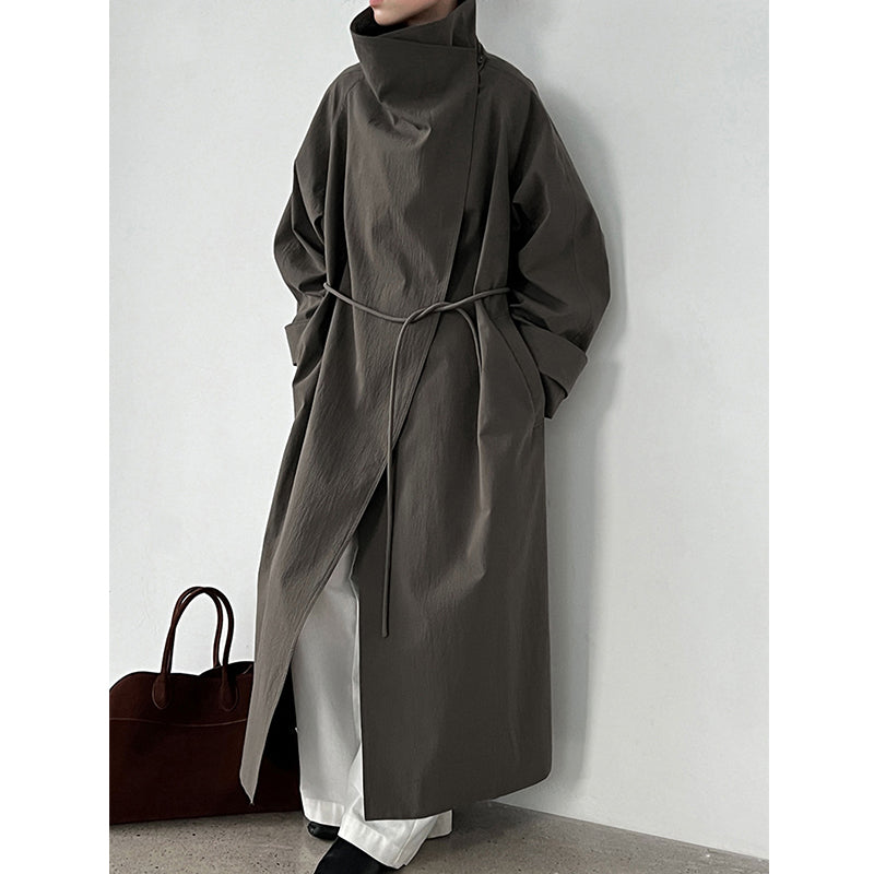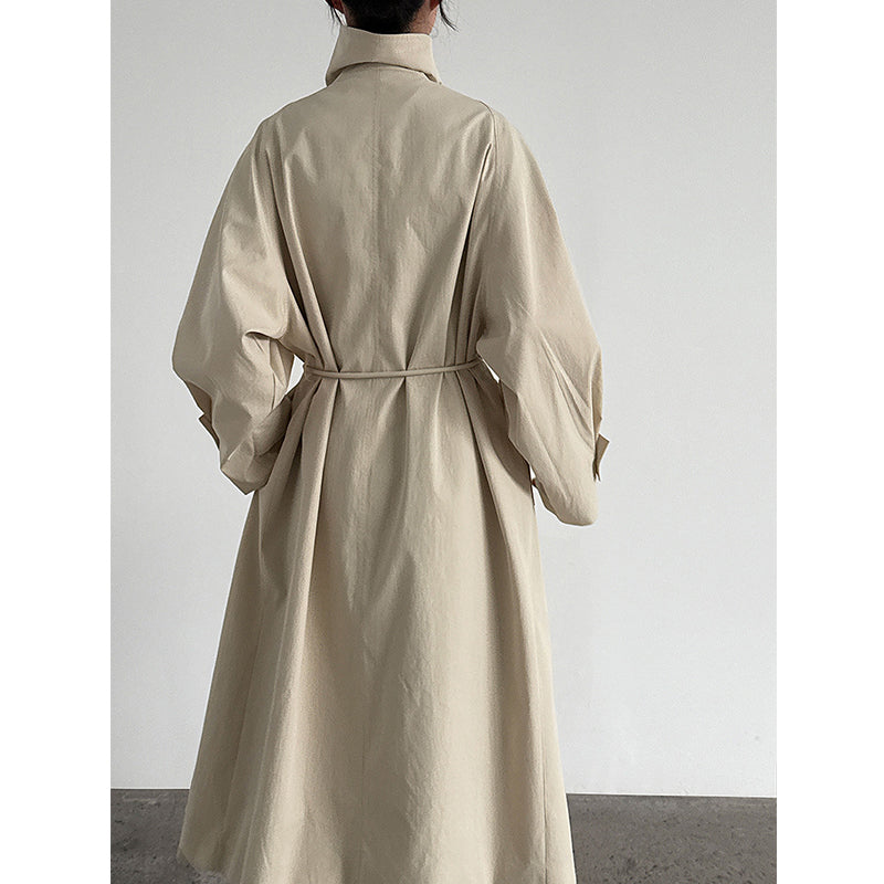 Stand-up Collar Retro Belted Mid-length Loose Coat