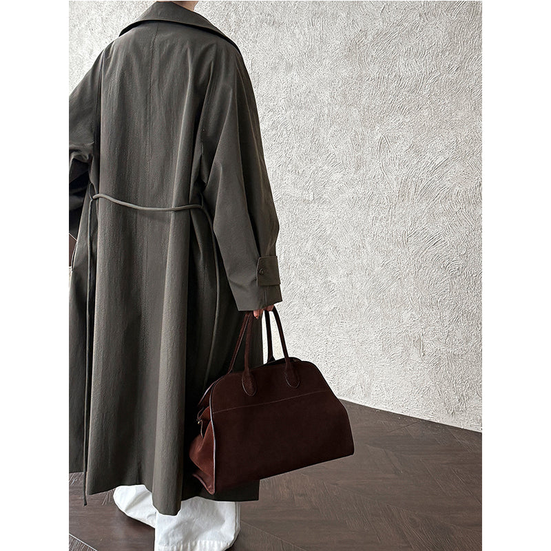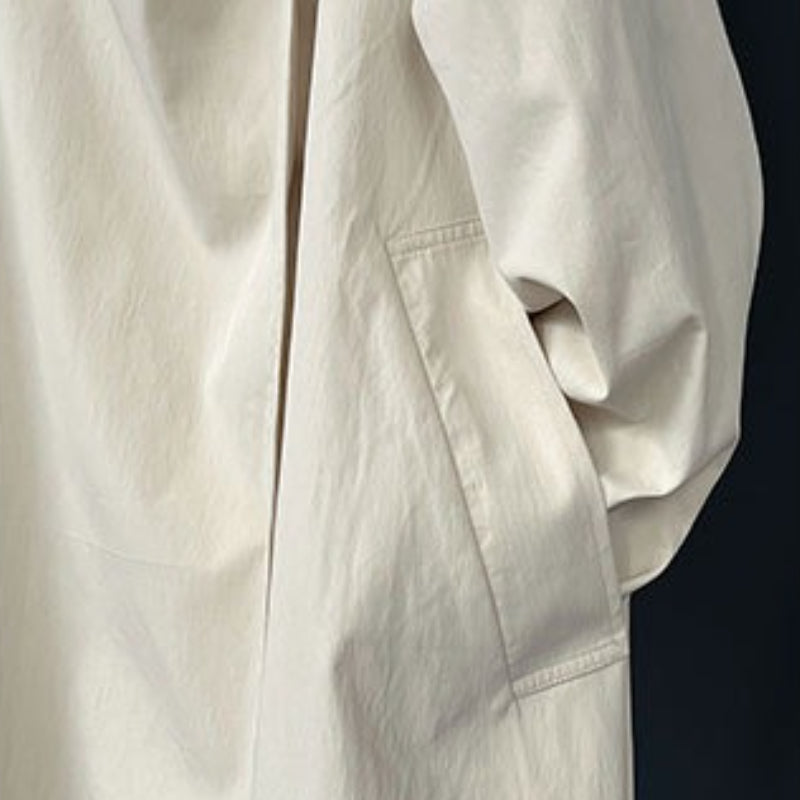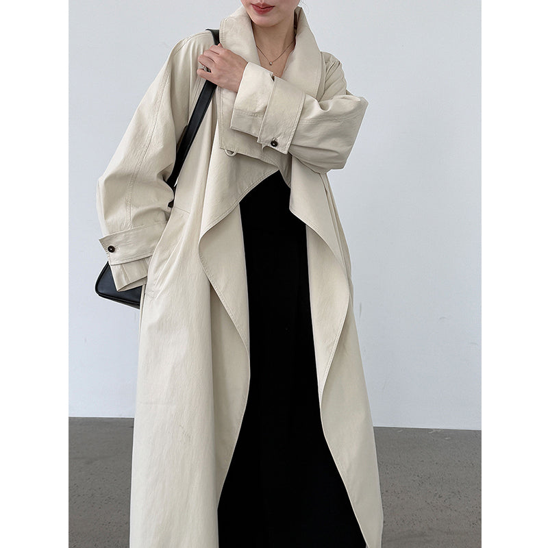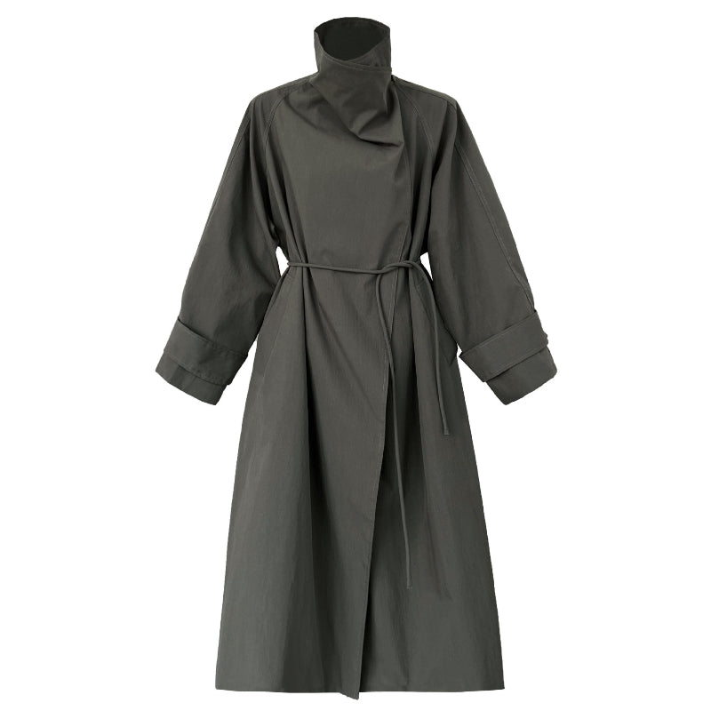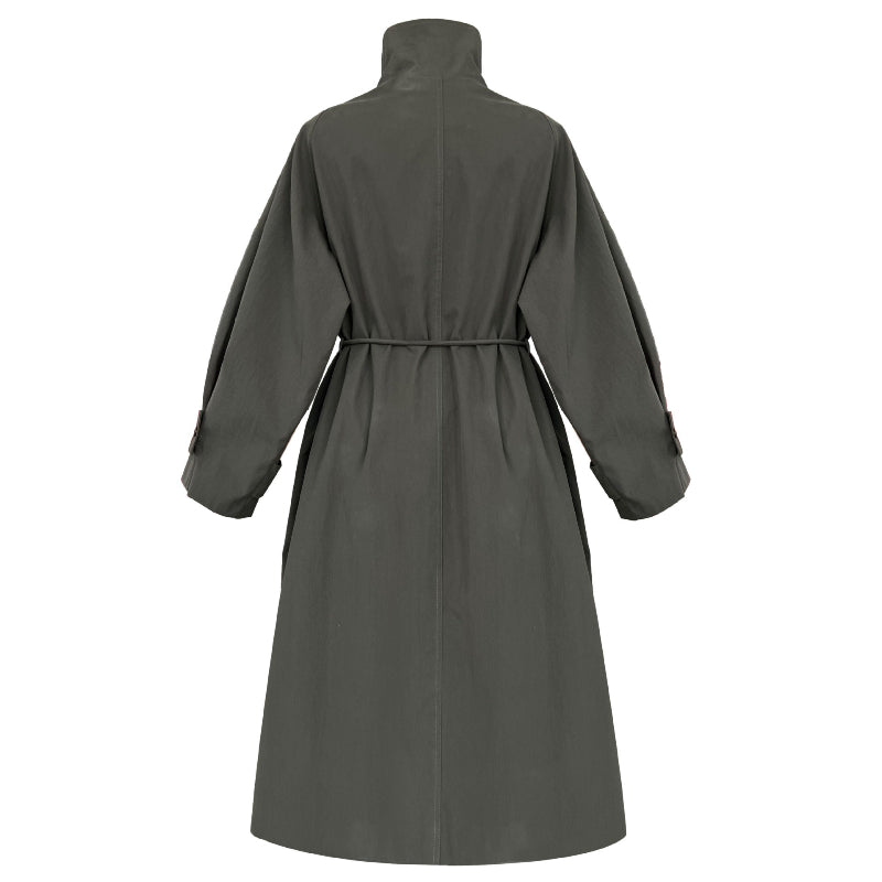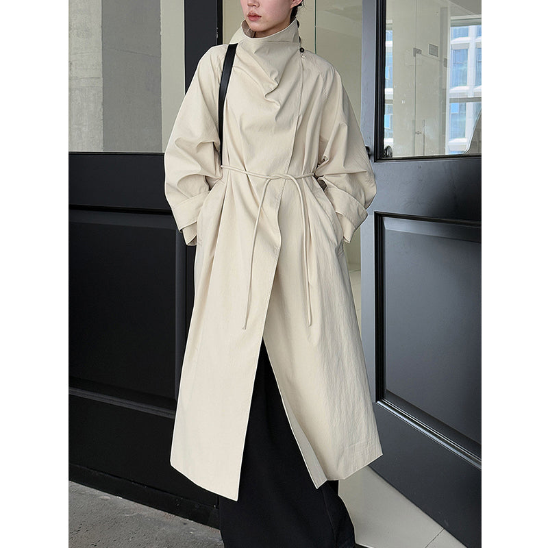 Stand-up Collar Retro Belted Mid-length Loose Coat